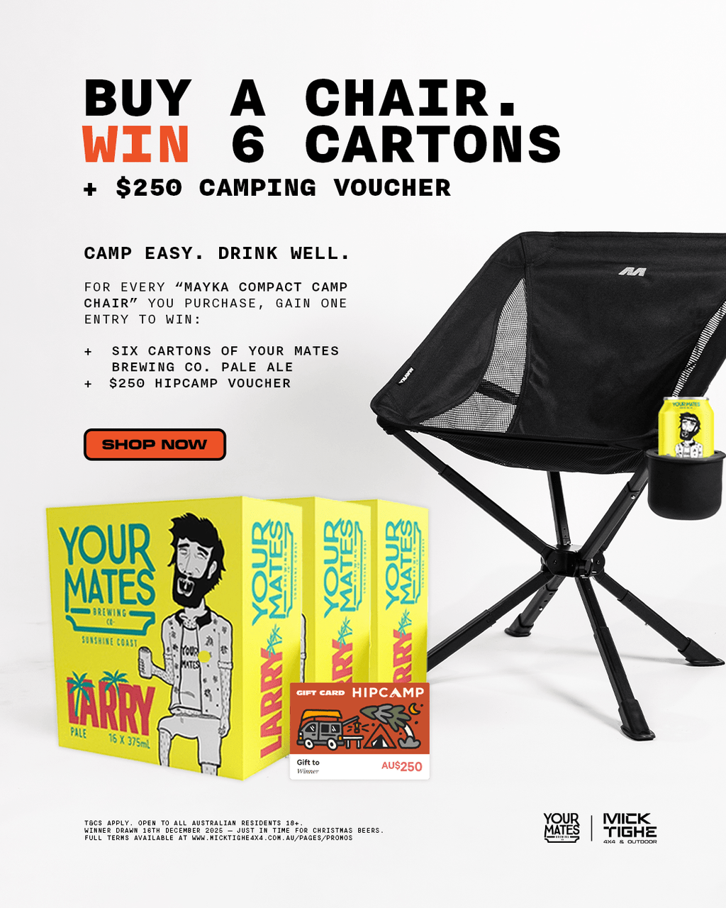 To celebrate the launch of MAYKA’s all-new Compact Camping Chair, we’ve teamed up with our mates at Our Mates Brewing Co. to bring you a bloody good summer giveaway valued at $500+.