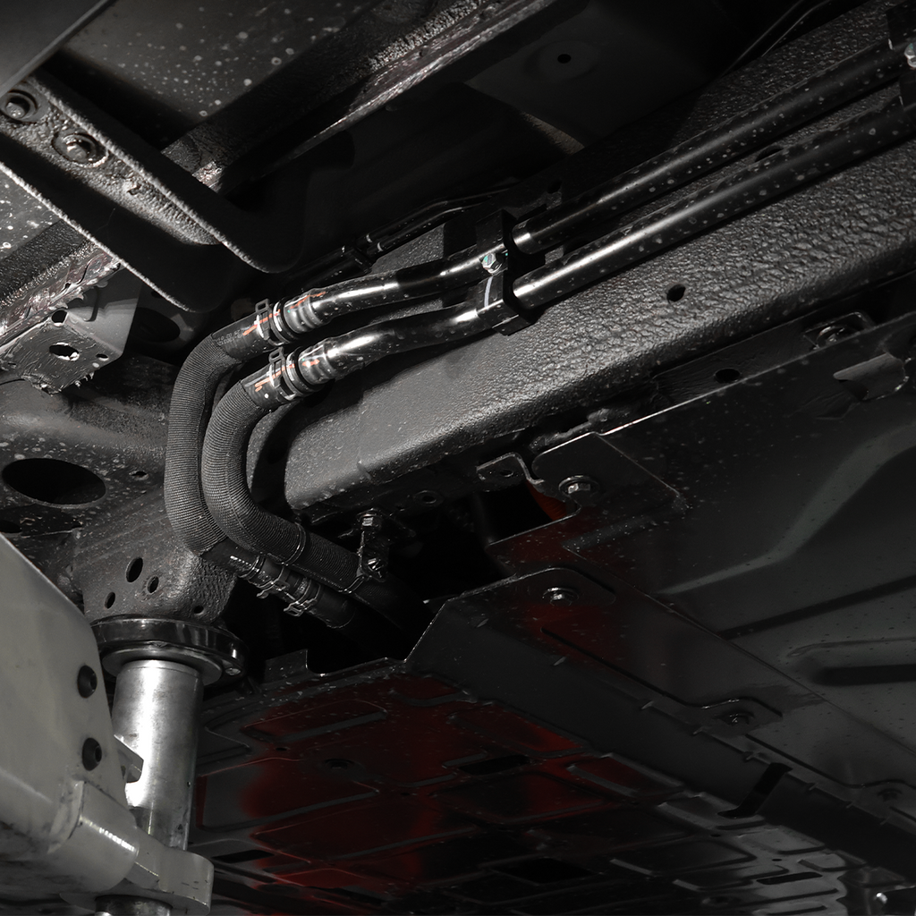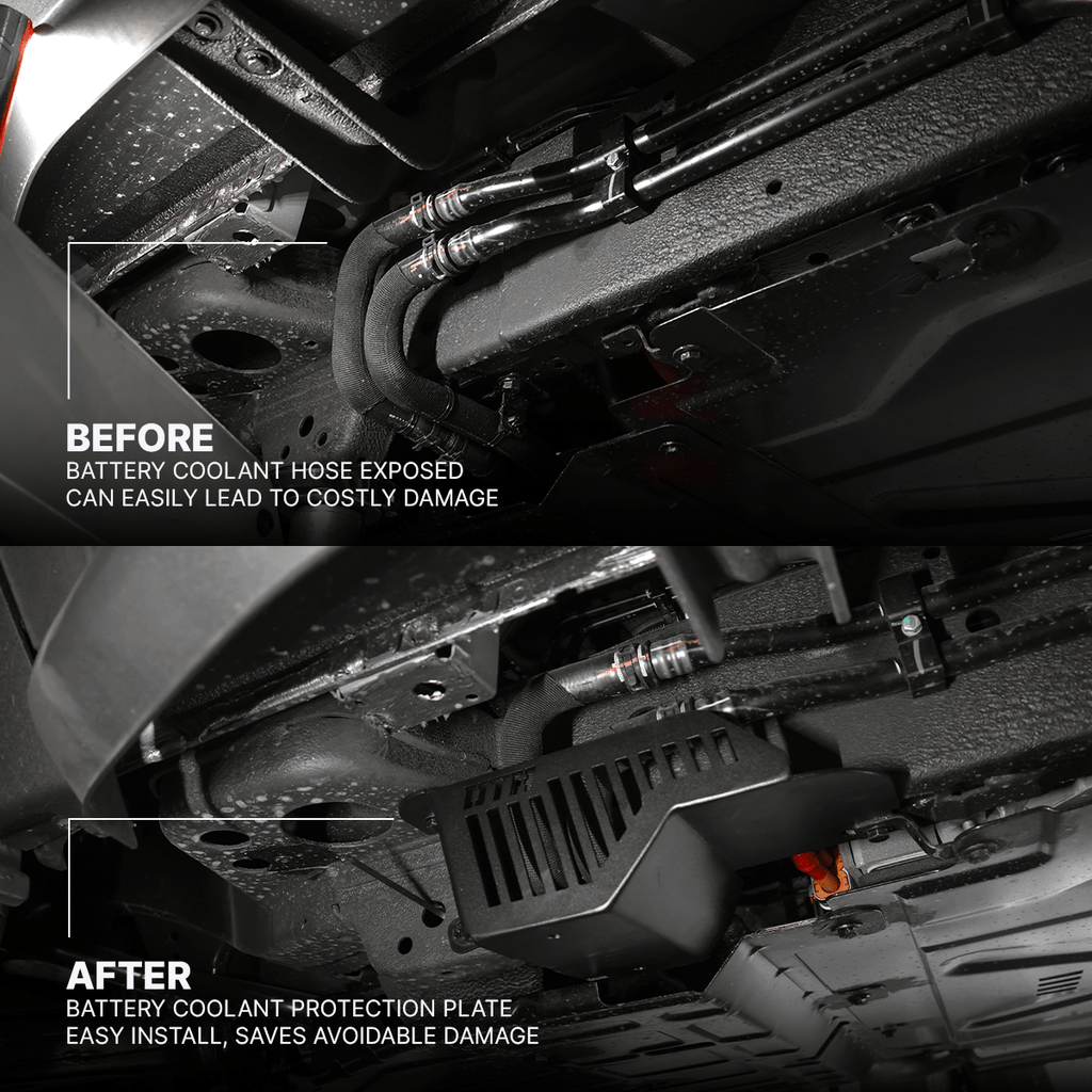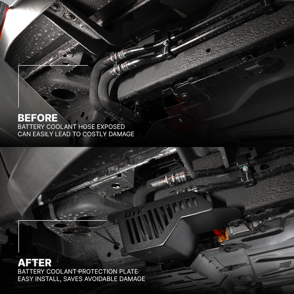 From factory, the coolant hose is left exposed under the vehicle. On Aussie job sites, country roads or off-road tracks, even a small branch or rock can tear or crush the line. This plate adds a simple layer of insurance so you can use your Shark the way it was intended, without worrying about one strike giving a world of headaches.
