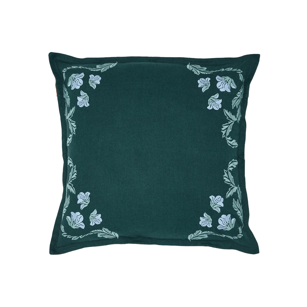Textured, fresh and easy to live with. The Teal Hemp Cushion Cover pairs a soft hemp-blend front with floral embroidery and a recycled PET base that resists moisture, so it’s at home on the sofa or in a covered outdoor space. Finished with a neat zip closure. Cover only, so you can choose the insert you like.