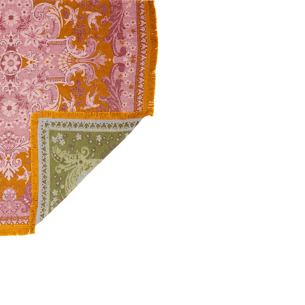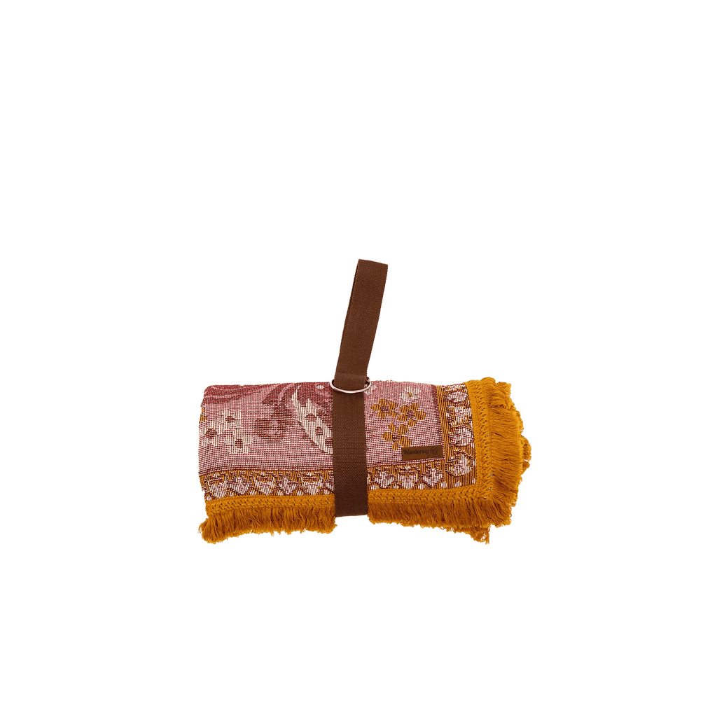 Soft, warm and beautifully detailed, the Ornate Floral Throw in Rosé brings a vintage-inspired bloom to your home or campsite. Woven from 100% pre-consumer recycled cotton, it has a gentle hand feel and coloured cotton fringing for a tidy finish. Use it as a couch throw, picnic layer, beach blanket or extra warmth by the fire. A brown woven carry strap is included so it’s easy to roll, pack and take anywhere.